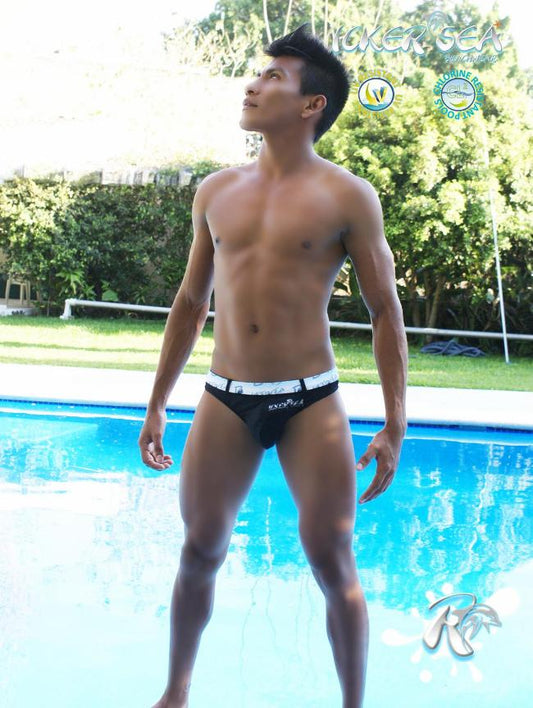 Icker Sea Sailor Tanga-Badeanzug mit Gürtel und Logo, Schwarz, COB-13-07