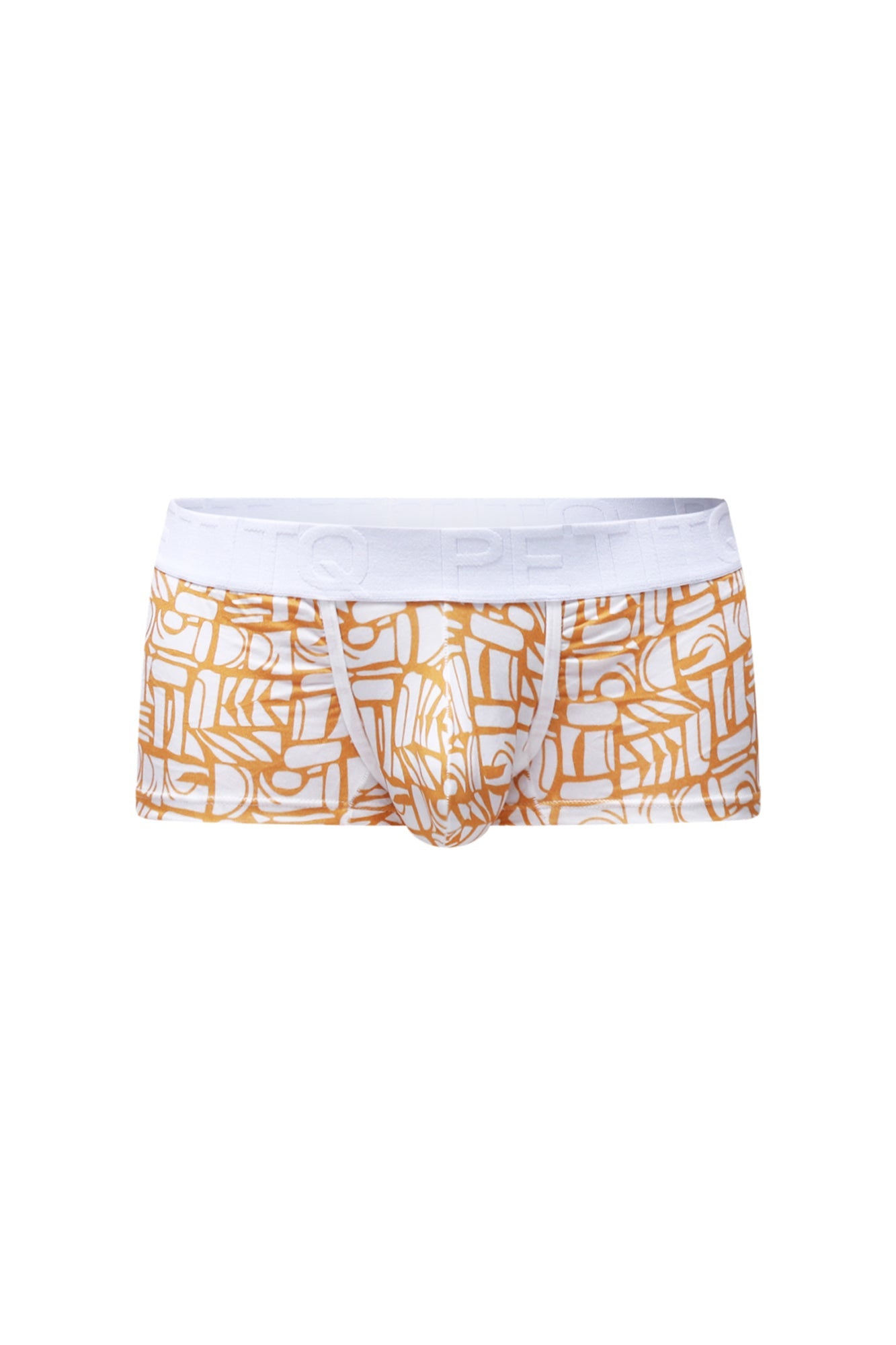 The Trunk Carlot Alloy is a low-rise men’s trunk made from ultra-soft modal fabric (95% modal, 5% spandex) designed for style, comfort, and movement. It features a bright orange body with a clean white waistband and an eye-catching geometric pattern for a bold, modern touch.